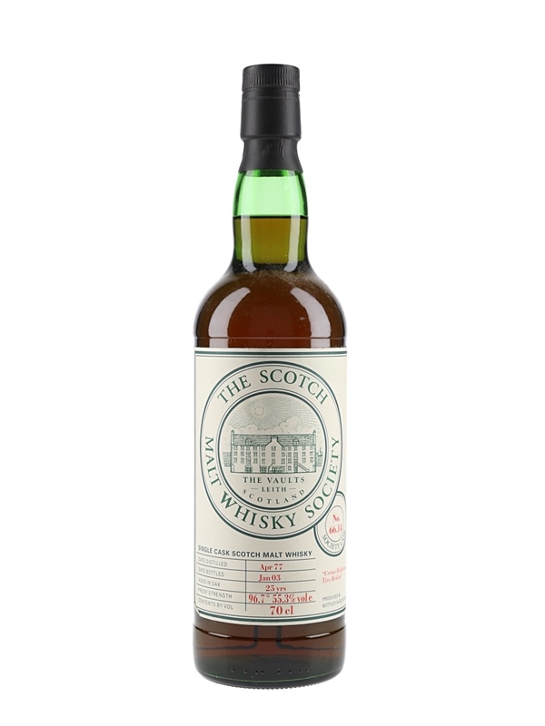 A 1977 vintage whisky from the Scotch Malt Whisky Society. This whisky was distilled at Ardmore distillery in April 1977, matured for 25 years, and bottled in January 2003.
