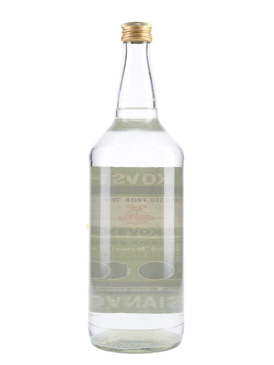 A litre bottle of Moskovskaya genuine Russian vodka. This was imported from the USSR, we estimate in the 1970s.