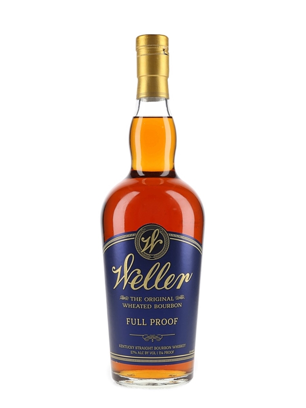 A bottle of Weller Full Proof Kentucky Straight Bourbon Whiskey, the Original Wheated Bourbon, produced at Buffalo Trace distillery. The bottling code indicates this was bottled in 2021.
