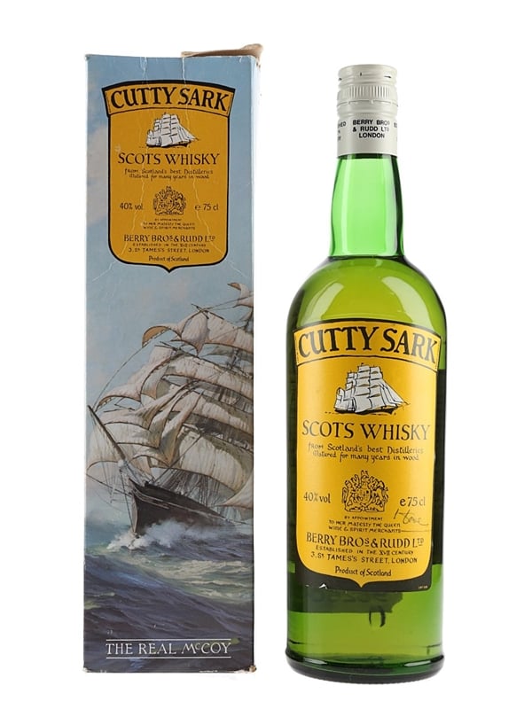 A bottle of Cutty Sark blended Scotch whisky produced by Berry Bros & Rudd. We estimate this was bottled in the 1980s.