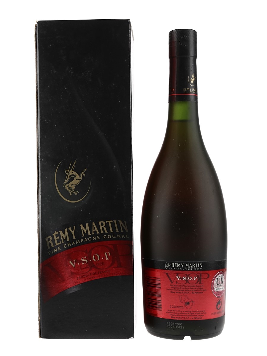 A bottle of Remy Martin VSOP Fine Champagne Cognac. We estimate this was bottled in the 2000s.