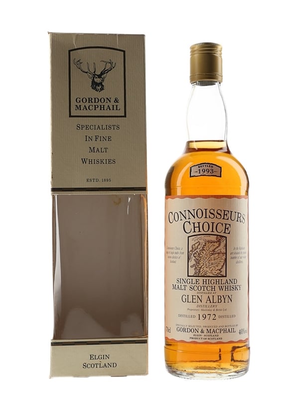 A bottle of Glen Albyn 1972, bottled by Gordon & MacPhail in 1993 for the Connoisseurs Choice series.