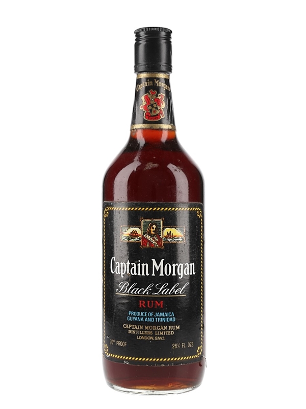 A bottle of Captain Morgan Black Label Rum. We estimate this was bottled in the 1970s.