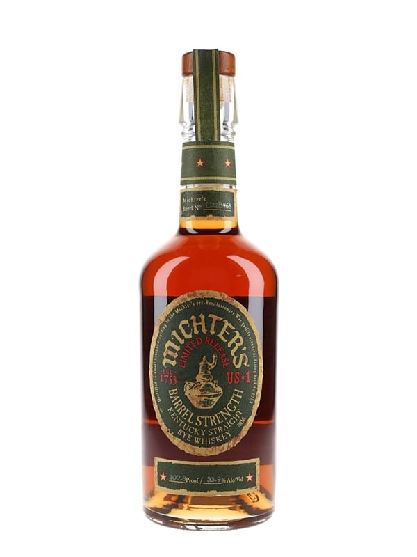 A bottle of Michter's US*1 Limited Release Barrel Strength Kentucky Straight Rye Whiskey, matured in a single charred white oak barrel and bottled at a cask strength of 53.9% ABV. This was imported to the UK by Speciality Brands Ltd.
