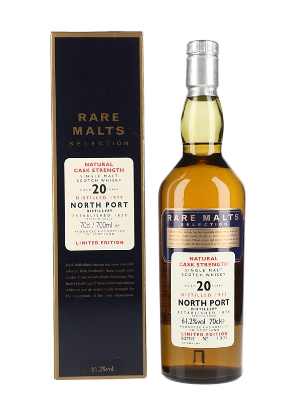 A bottle of North Port 20 Year Old Single Malt Scotch Whisky. This was distilled in 1979 and bottled in October 1999 for Diageo's now discontinued Rare Malts Selection range.