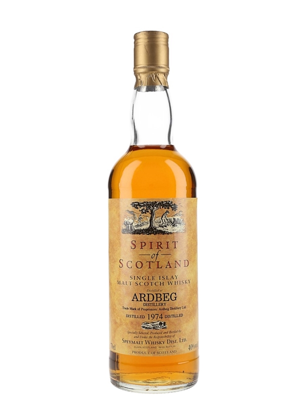 A bottle of Ardbeg 1974 from the Spirit of Scotland series. The bottling code indicates this was bottled in 1996.