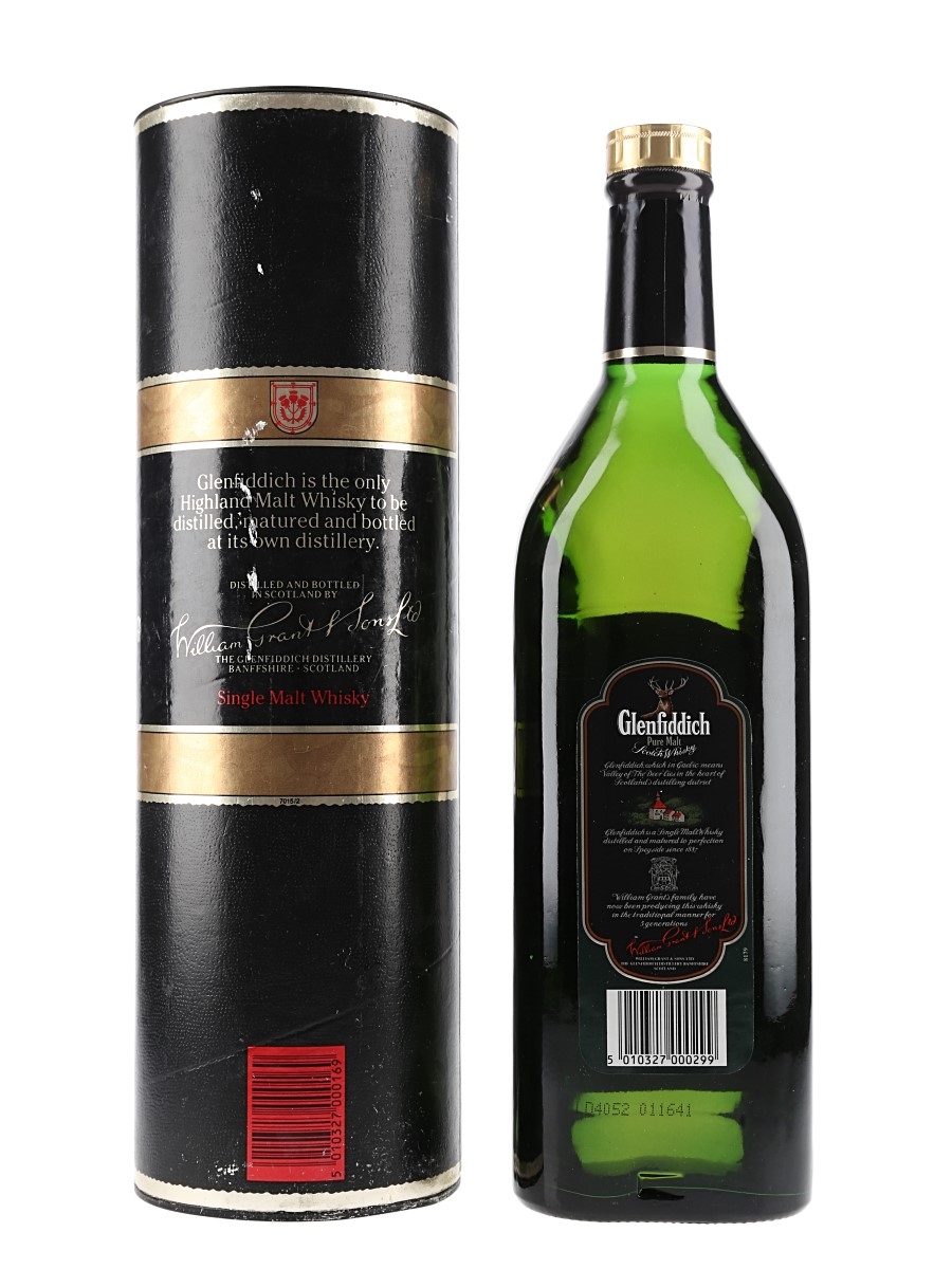 A litre bottle of Glenfiddich Special Old Reserve Pure Single Malt Scotch Whisky produced by William Grant & Sons Ltd. We estimate this was bottled in the 1990s.