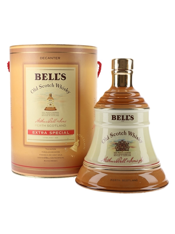 A bottle of Bell's Extra Special Old Scotch Whisky produced by Arthur Bell & Sons and presented in a genuine Wade porcelain decanter finished in 22 carat gold. This was a limited edition produced in addition to the annual series of Christmas decanters.
