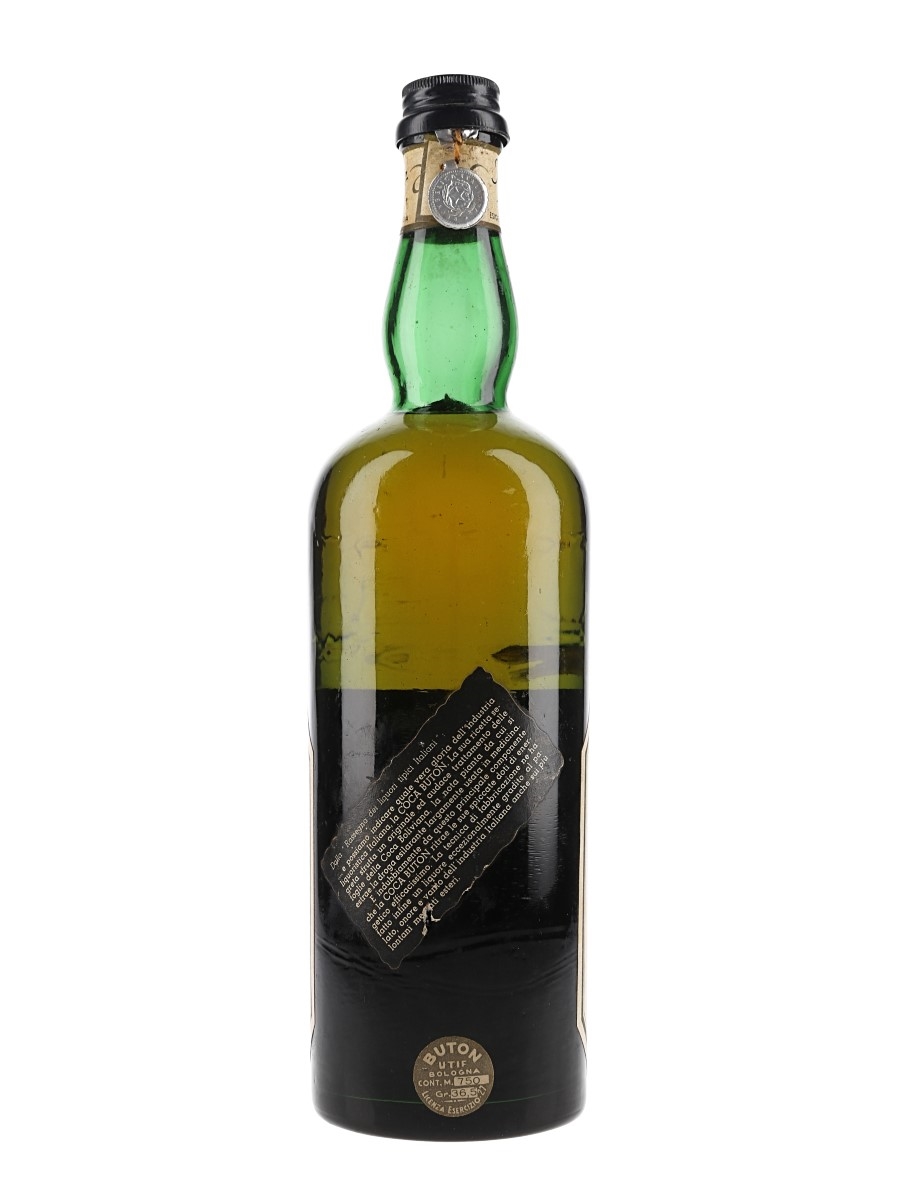 A bottle of Coca Buton, an Italian liqueur made from alcohol infused with coca leaves and other aromatic herbs. We estimate this was bottled in the 1950s.