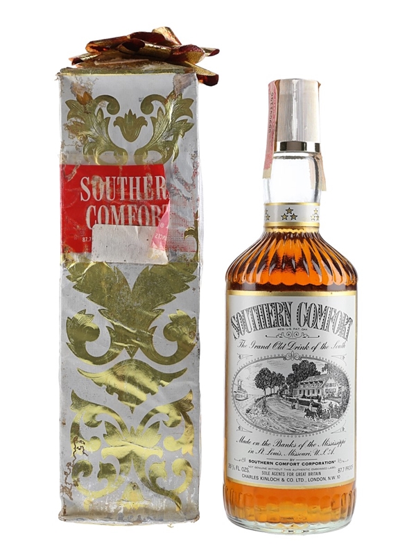 A bottle of Southern Comfort, The Grand Old Drink of the South. This was bottled at 43.8% ABV for sole agents for Great Britain Charles Kinloch & Co Ltd, we estimate in the 1970s.