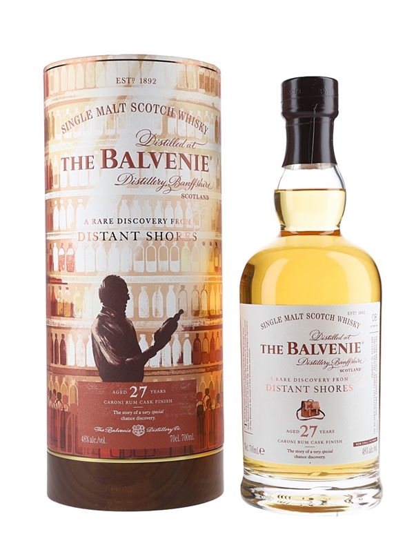 A bottle of The Balvenie 27 Year Old Single Malt Scotch Whisky, matured for 27 years in Caroni Rum casks. This was bottled at 48% ABV as Story No. 8 in The Balvenie Stories series.