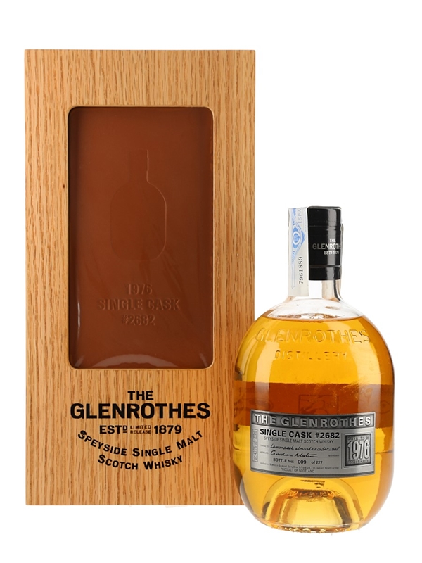 A bottle of The Glenrothes 1976 Single Speyside Malt Scotch Whisky. This was distilled in 1976 from cask number 2682 and bottled in 2015.