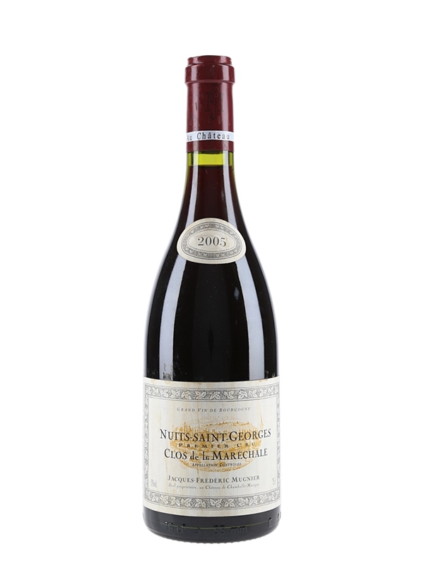 A bottle of Nuits-St-Georges Clos de la Maréchale Premier Cru 2005 from Jacques-Fréderic Mugnier.