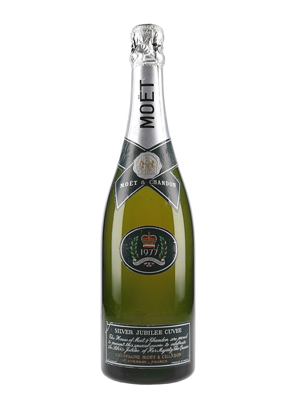 A bottle of Moët & Chandon 1977 Silver Jubilee Cuvée. This was bottled to commemorate the Silver Jubilee of Her Majesty The Queen.