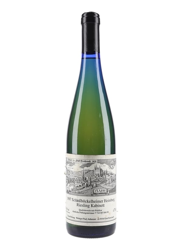 A bottle of Schlossbockelheimer Heimberg Riesling Kabinett 1997 from the Nahe region of Germany, produced by Paul Anheuser.