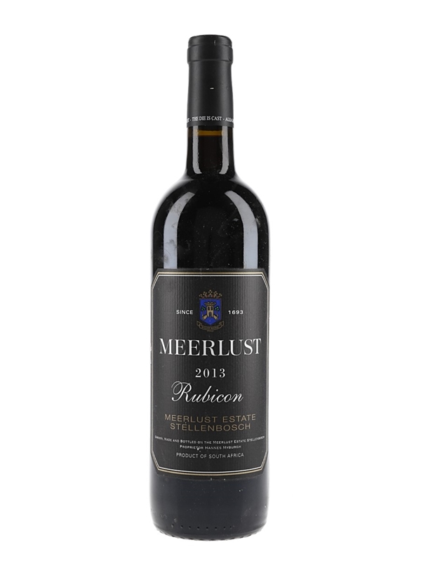A bottle of Meerlust Rubicon 2013 from Stellenbosch in South Africa,