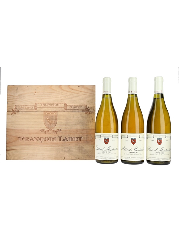 A case of three bottles 2004 Bâtard-Montrachet Grand Cru Réserve François Labet, bottled by Henri Darnat, who took over the family domaine in 2000 and converted it to organic production.