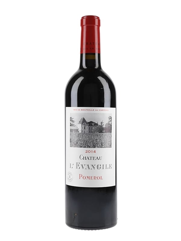 A bottle of 2014 Chateau L'Evangile from the Pomerol appellation of Bordeaux.