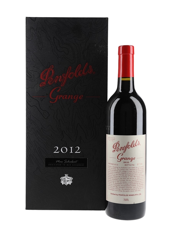A bottle of Penfolds 2012 Grange Bin 95 from South Australia, matured for 18 months in American oak hogsheads. This is the 62nd vintage, made up of 98% predominantly Barossa Shiraz. This is bottle number BF746.