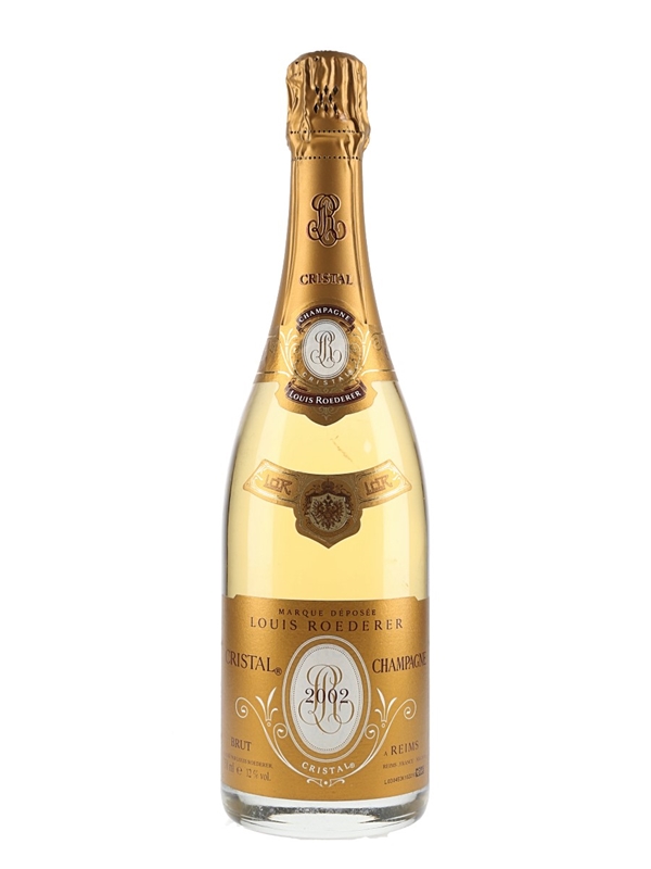 A bottle of Louis Roederer Cristal from the 2002 vintage, presented in a limited edition box.