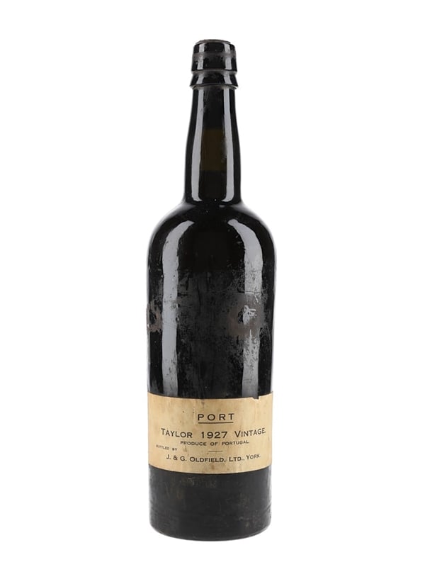 A bottle of Taylor 1927 Vintage Port, shipped and bottled in the UK by J & G Oldfield., Yorks. 1927 was described by the late auctioneer and fine wine authority Michael Broadbent MW as 'a great, classic, late vintage, the best between 1912 and 1935,' noting that it was declared by 30 shippers, with Taylor itself 'magnificent' when last tasted in late 1997.