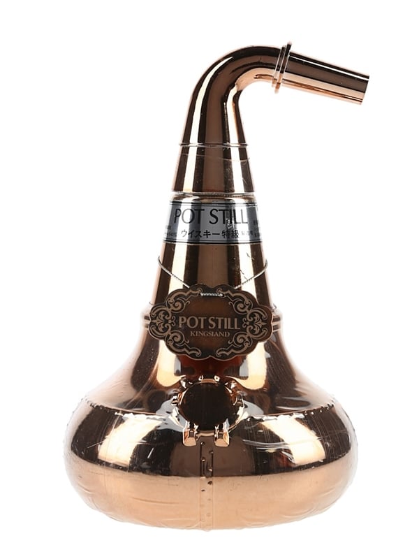 A bottle of Nikka Kingsland Japanese Whisky, presented in a pot still shaped decanter.