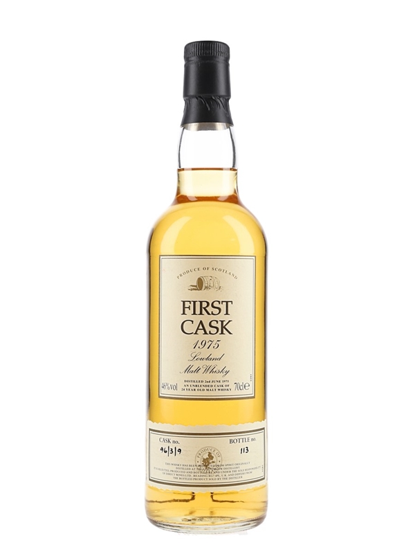 A bottle of Linlithgow 24 Year Old Lowland Malt Whisky, distilled on 2 June 1975 and bottled from a single cask. This was bottled by Direct Wines Limited for their First Cask series and was available exclusively to First Cask Circle Members.