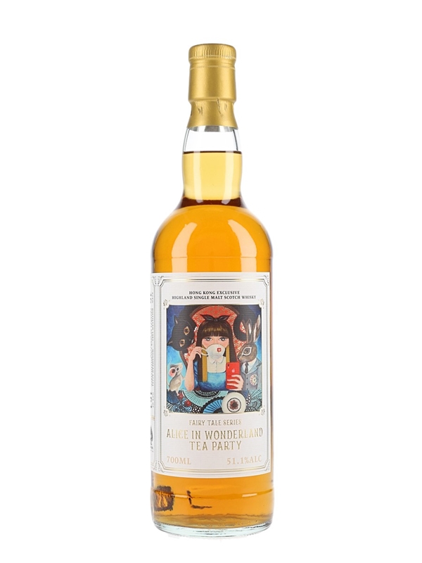 A bottle of 36 Year Old Highland Single Malt Scotch Whisky. This was distilled in 1983 and bottled by Club Qing Whisky Bar for the Fairy Tale Series. This bottle is titled 'Alice In Wonderland Tea Party'.