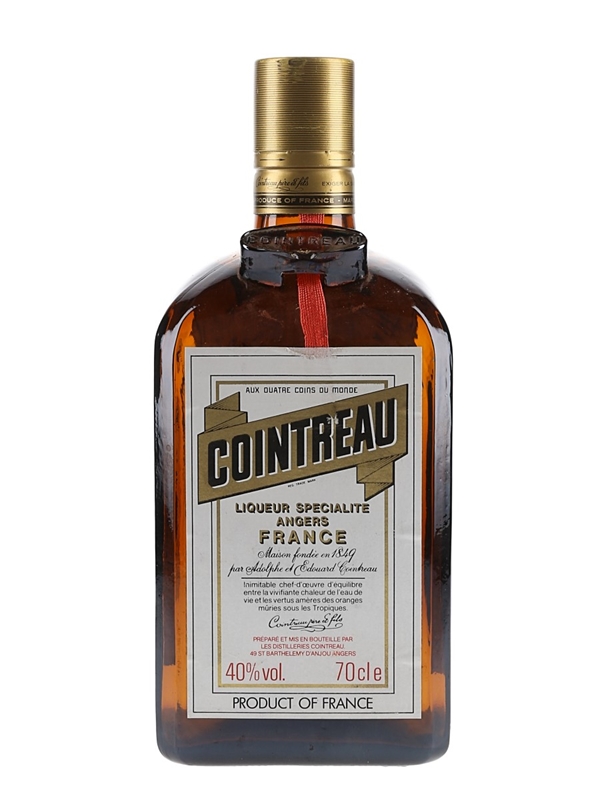 A bottle of Cointreau, an orange liqueur from France first produced in 1875. We estimate this was bottled in the 1980s.