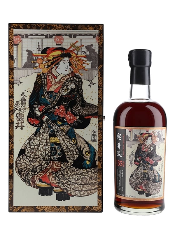 A bottle of Karuizawa 35 Year Old Single Cask Malt Whisky. This was distilled in 1981, matured in a single bourbon cask and bottled at cask strength in 2017. This comes in a presentation box and is part of the Splendid Age series.