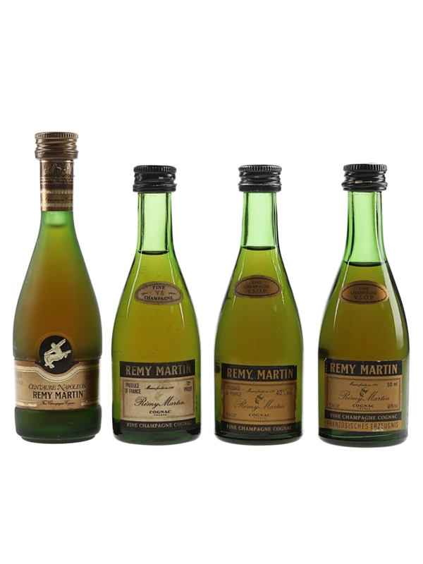 This lot contains four miniature bottles of Cognac including Remy Martin Centaure Napoleon, VS and VSOP Fine Champagne Cognac. We estimate these were bottled in the 1970s to 1980s.