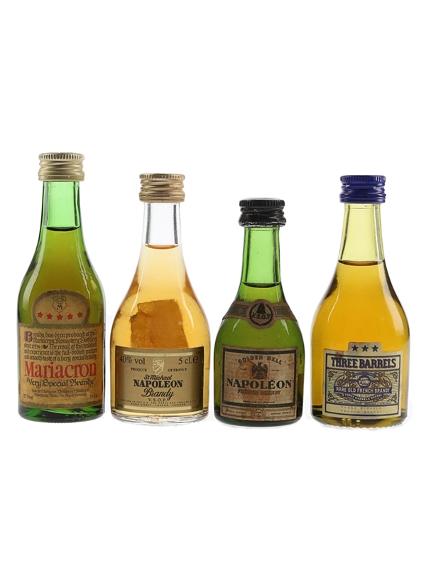 Napoleaon VSOP Brandy, Golden Bell Napoleon, Mariacron & Three Barrels 3 Star Bottled 1970s-1980s 4 x 3cl-5cl / 40%