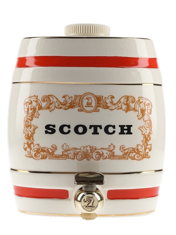 This lot contains a Scotch Whisky Barrel Ceramic Dispenser. W & A Gilbey Limited by Royal Victoria Wade Pottery. It has an in-built tap pourer and is designed to hold approximately 50cl of liquid.