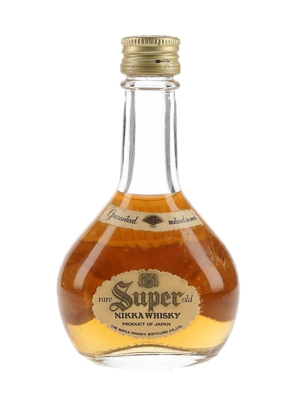 A miniature bottle of Nikka Super Rare Old Japanese whisky.