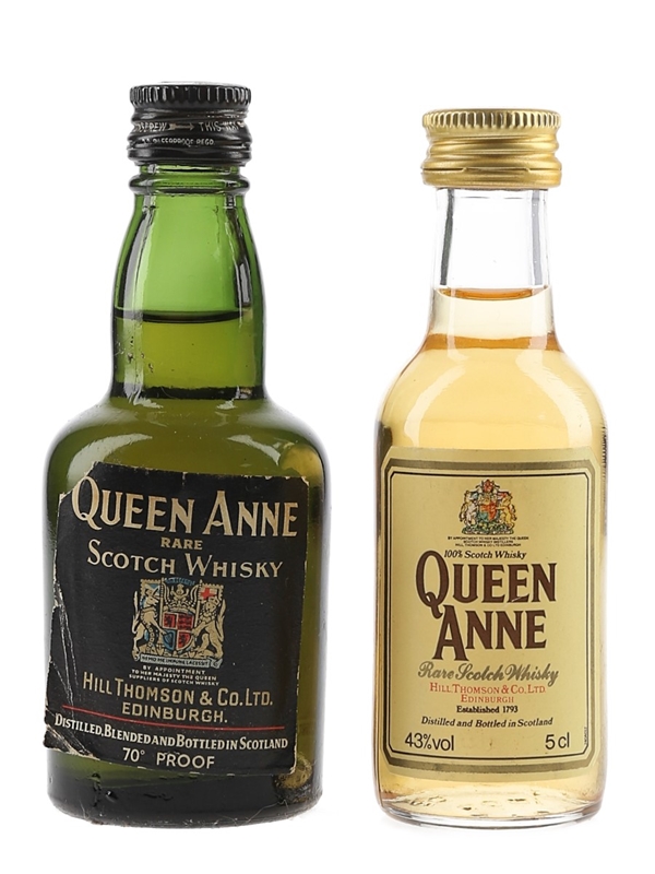 This lot contains two miniature bottles of Queen Anne Rare Scotch Whisky. We estimate these were bottled in the 1960s and 1980s.