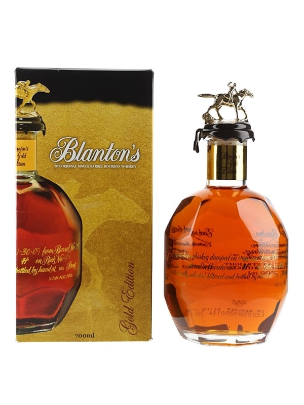 A bottle of Blanton's Gold Edition Kentucky Straight Bourbon Whiskey.