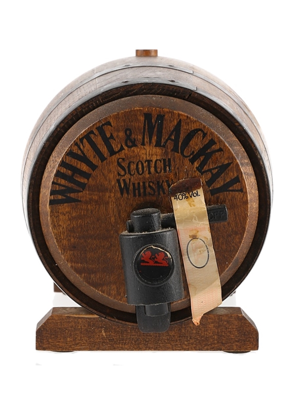 A wooden barrel containing Whyte & Mackay Scotch Whisky with a plastic tap dispenser. This measures approximately 22cm x 13cm x 11cm.