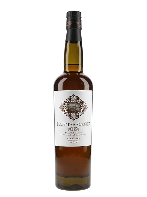 A bottle of Canto Cask 35 Single Cask Selection from independent bottler Compass Box. Cask number 35 was chosen by Maurizio Cagnolati of Italian spirits distributer Arnolfini.