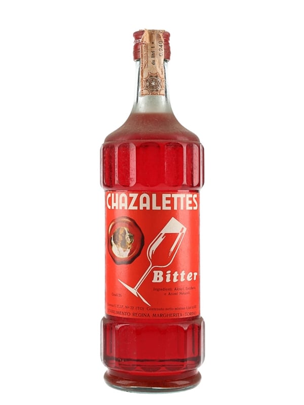 A litre bottle of Chazalatte Bitter from Italy. We estimate this was bottled in the 1960s to 1970s.