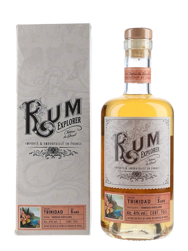 A bottle of Rum Explorer Chateau Du Breuil produced in Trinidad. This was aged for three years and finished in ex-Madeira and ex-Bourbon American oak casks. This was imported and bottled in France.