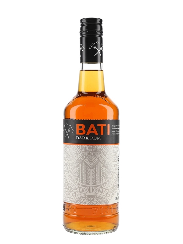 A bottle of Bati Dark Rum aged for 2 years in white oak from Fiji.