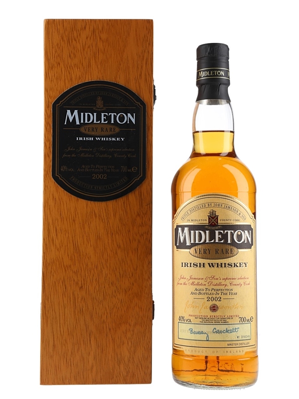 The 2002 release of Midleton Very Rare Irish Whiskey. Every year since 1984, a new release has been produced and bottled in limited quantities. This comes in a wooden presentation box with a certificate of authenticity.
