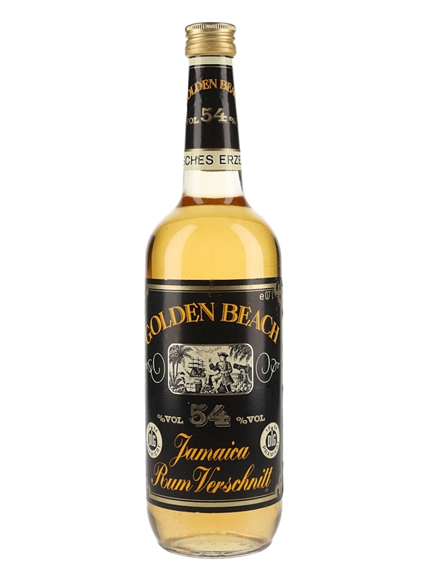 A bottle of Golden Beach Jamaica Rum Verschnitt, bottled at 54% ABV.