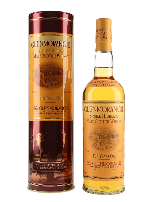 A bottle of Glenmorangie 10 Year Old Single Highland Malt Scotch Whisky in a presentation tin. We estimate this was bottled in the 2000s.