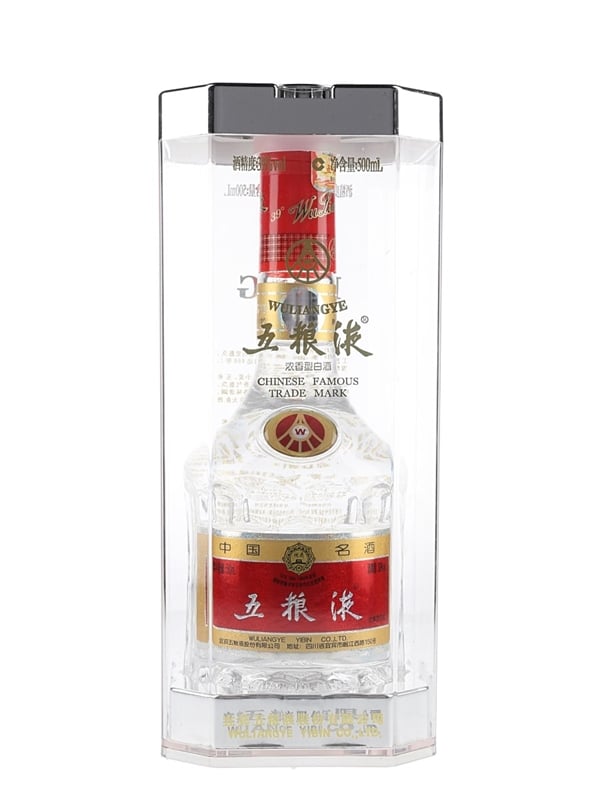 A 50cl bottle of Wu Liang Ye Baiju from China. This is distilled from Proso millet, corn, glutinous rice, long grain rice and wheat. The bottling code indicates this was bottled in 2012.