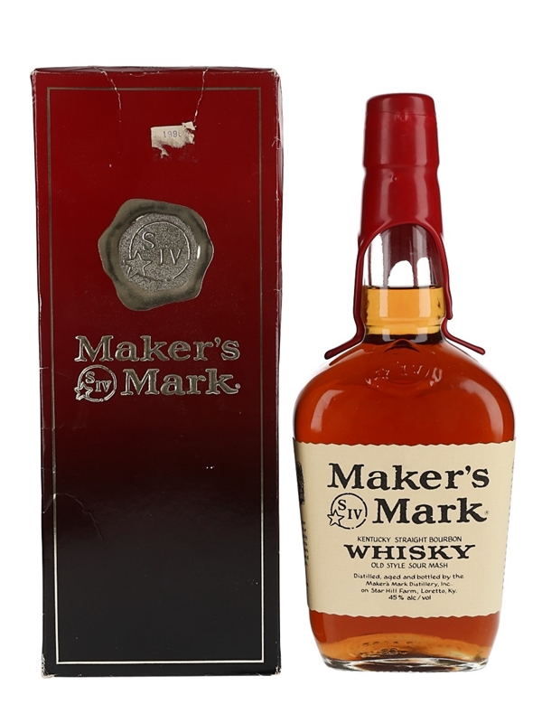 A bottle of Maker's Mark Handmade Kentucky Straight Bourbon Whisky bottled at 45% ABV.