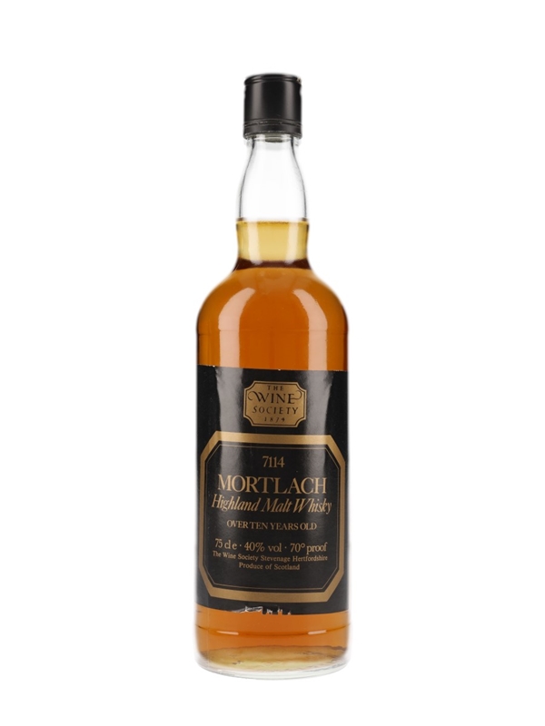 A bottle of Mortlach 10 Year Old single malt Scotch whisky bottled by The Wine Society. We estimate this was bottled in the late 1970s to early 1980s.