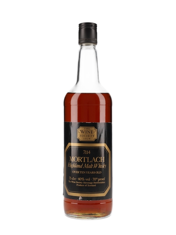 A bottle of Mortlach 10 Year Old single malt Scotch whisky bottled by The Wine Society. We estimate this was bottled in the late 1970s to early 1980s.