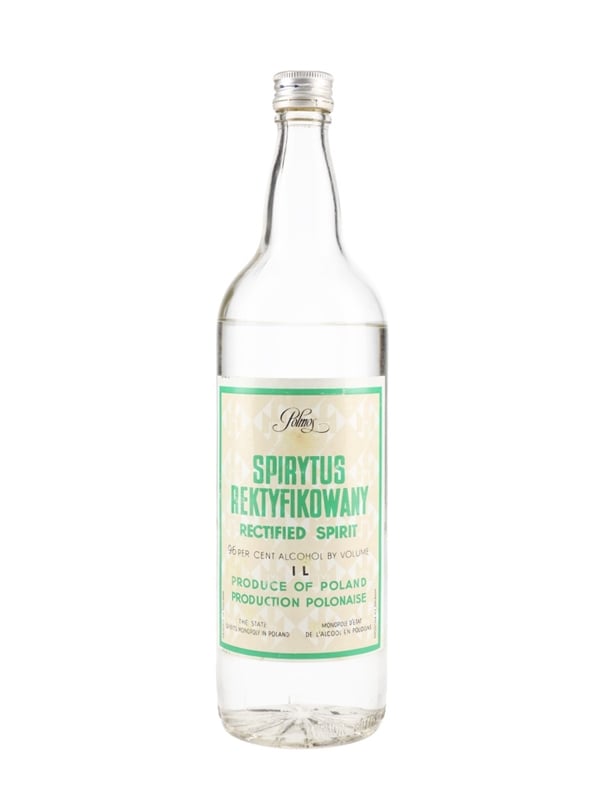 A litre bottle of Spirytus Rektyfikowany Rectified Spirit bottled at 96% ABV, produce of Poland.