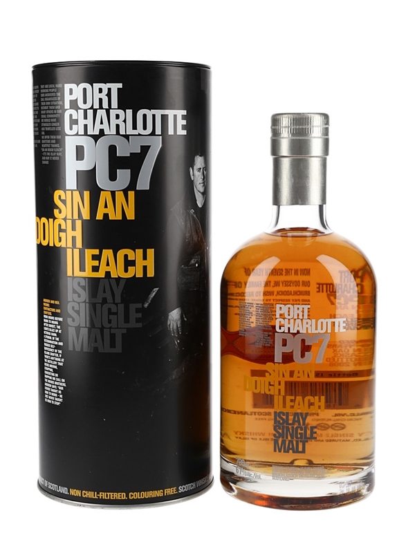 A bottle of Port Charlotte 7 Year Old PC7 Sin An Doigh Ileach Islay Single Malt Scotch Whisky. The bottling code indicates this was bottled on 20 October 2008.